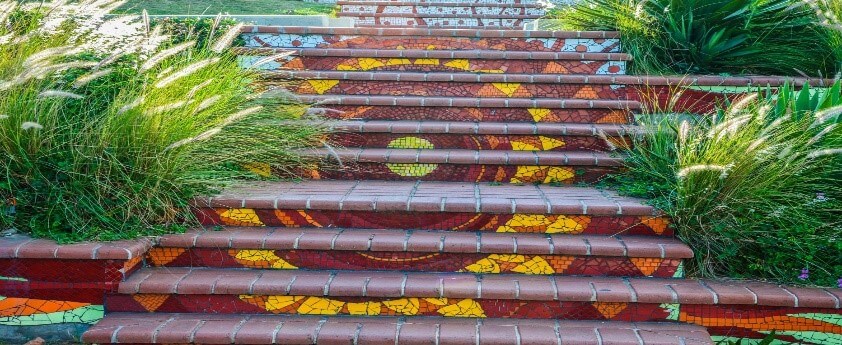 Na de lunch stond de route 67 door Port Elizabeth op het programma met onze uiterst gemotiveerde gids Lungelo. Hij leidde ons langs een indrukwekkende wandelroute met 67 kunstwerken die symbool staan voor de 67 jaren die Nelson Mandela heeft gewerkt aan de vrijheid van Zuid-Afrika. Via de 67 trappen met mozaïek loop je omhoog naar The Donkin Reserve Pyramid & Lighthouse.