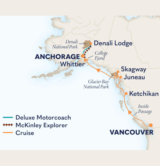 In samenwerking met Holland America Line bieden wij een exclusieve Limburgs begeleide reis aan met een cruise van Vancouver naar o.a. Ketchikan, Juneau, Glacier Bay National Park en met als kers op de taart: een 5-daags landprogramma naar Denali National Park.