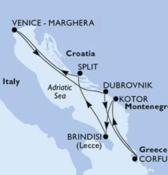 In samenwerking met MSC Cruises bieden wij een exclusieve Limburgs begeleide* Middellandse Zee cruise aan, inclusief retourvlucht vanaf Amsterdam naar Venetië. Vaar langs prachtige Middellandse Zee-bestemmingen zoals Dubrovnik, Corfu, Kotor, Brindisi en Split, en ervaar een onvergetelijke mix van zon, cultuur en adembenemende historische pracht!