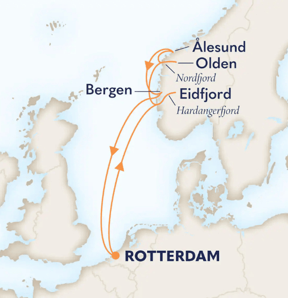 Kupers Reisinfo biedt in samenwerking met Holland America Line een exclusieve Limburgs begeleide cruise aan naar Noorwegen met vertrek vanuit Rotterdam. Ervaar betoverende dorpjes genesteld langs de Noorse fjorden. Bewonder de watervallen van Eidfjord de art nouveau-architectuur van Ålesund en proef de beroemde zeevruchten van Bergen.