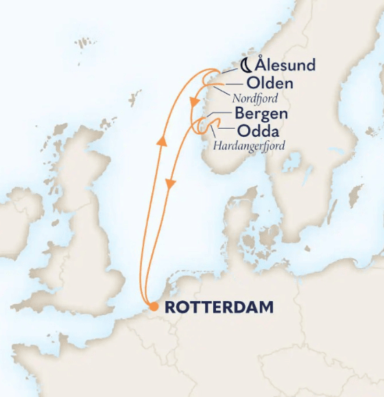 Wegens succes bieden wij in samenwerking met Holland America Line een 2e exclusieve Limburgs begeleide cruise naar Noorwegen aan met vertrek vanuit Rotterdam. Vaar door het majestueuze Nordfjord, bewonder de art nouveau-architectuur van Ålesund, de betoverende watervallen van Odda en de besneeuwde bergruggen van Hardangerfjord.