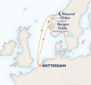 Wegens succes bieden wij in samenwerking met Holland America Line een 2e exclusieve Limburgs begeleide cruise naar Noorwegen aan met vertrek vanuit Rotterdam. Vaar door het majestueuze Nordfjord, bewonder de art nouveau-architectuur van Ålesund, de betoverende watervallen van Odda en de besneeuwde bergruggen van Hardangerfjord.